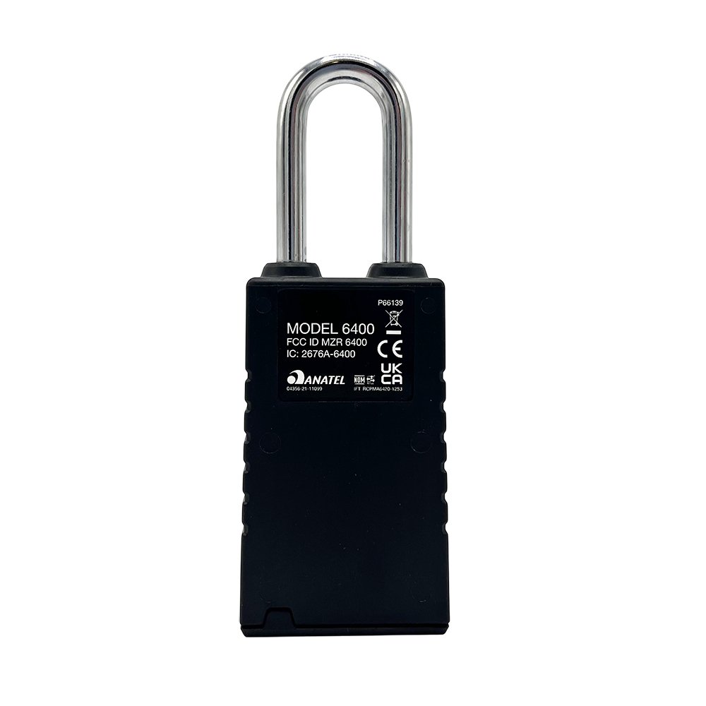 The Master Lock No. 6400EURLJENT Bluetooth® Extended Shackle Padlock features a 62mm wide metal body for durability and security. The 9mm diameter shackle offers 60mm vertical clearance and is made of boron alloy, offering maximum resistance to cutting and sawing. Weather cover provides enhanced weather resistance against snow, rain and temperature extremes.