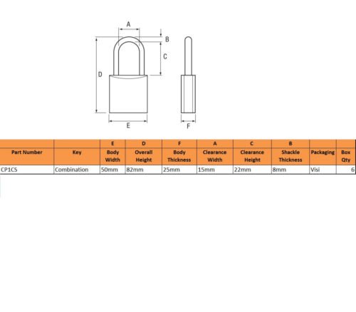 Squire CP50 50mm Close Shackle Combination Padlock